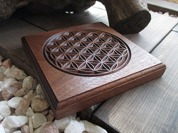 【フラワー・オブ・ライフ】が丁寧に彫刻されています。